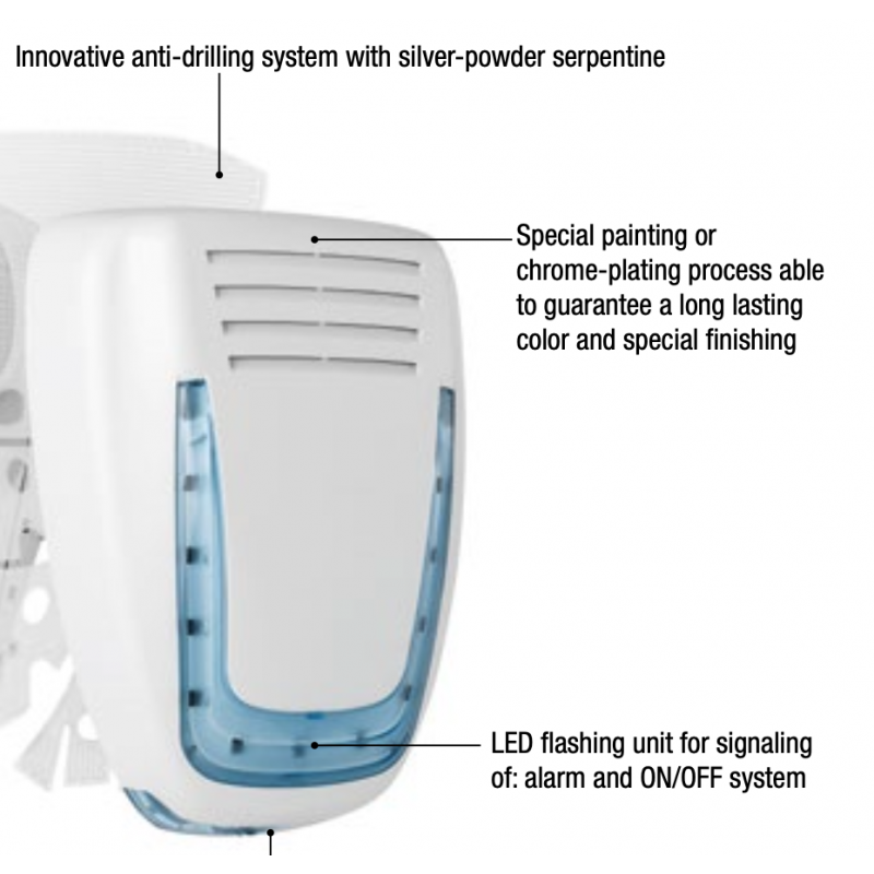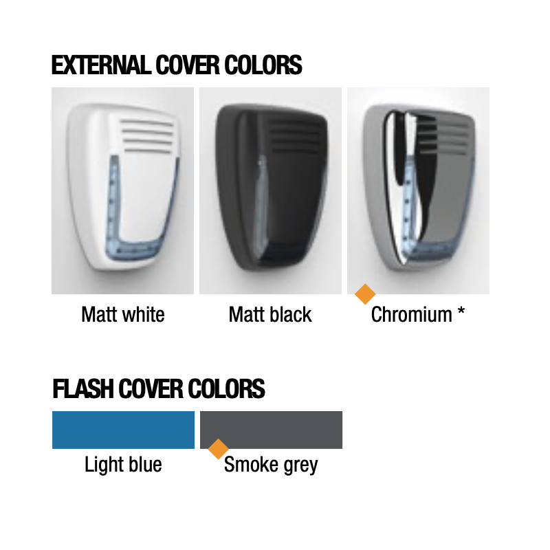 MOSE ABS, Μπροστινό κάλυμμα εξωτερικής σειρήνας με LED, χρώματα Ασπρο (ivory) - Γκρι (Gray) - Χρώμιο(Chromium)- Κόκκινο (Red) - Πράσινο (Green), δεν εμπεριέχει flash cover, κατασκευή Ιταλία, εγγύηση 6 έτη.